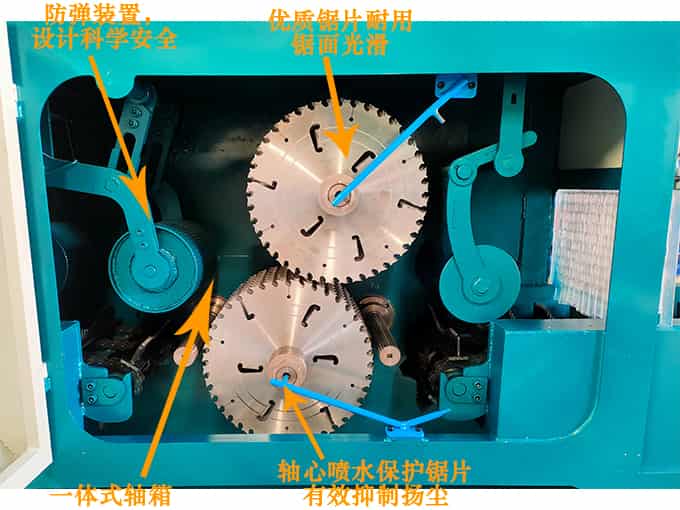 降溫系統:采用軸芯噴水技術,防塵環保,保護鋸片,能確保鋸片持續工作,延長鋸片壽命。