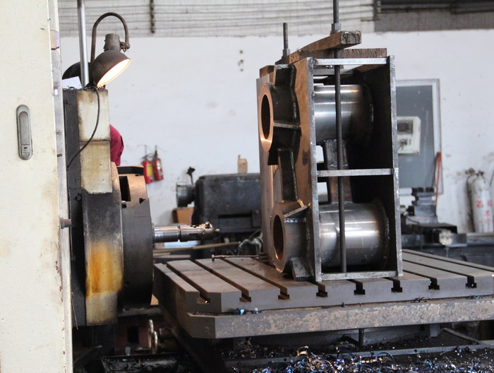 機械的整個主軸箱采用12厚的鋼板焊接成