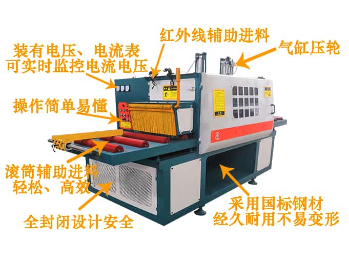 2.上壓料裝置采用氣缸壓輪,同時具有容易調(diào)節(jié)加工厚度,運(yùn)行穩(wěn)定,故障率低的優(yōu)點(diǎn)。