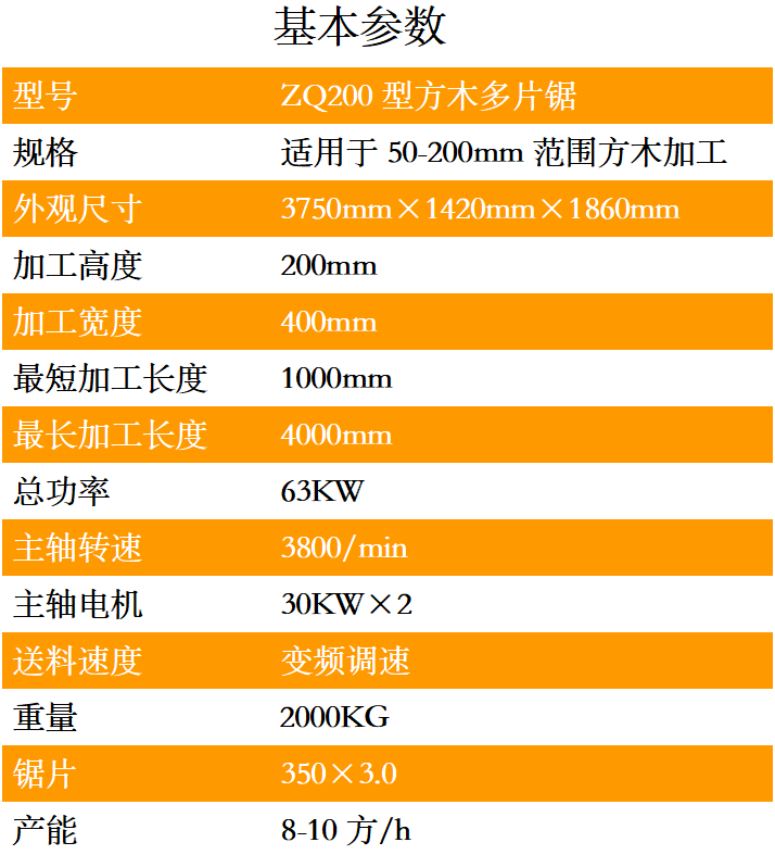 1.ZQ200型方木多片鋸采用獨(dú)立5條滾軸傳動設(shè)計,可以保證同一個平面線上,送料平穩(wěn)。